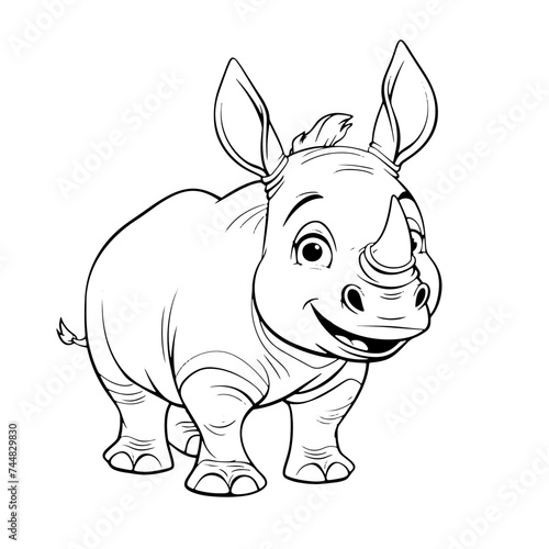 Naklejka premium Template for coloring cartoon animal rhino. Children's coloring book