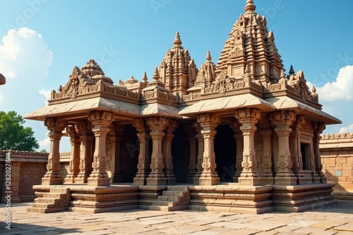 Fototapeta premium Temple architecture with intricate stone carvings and ornate details ,...