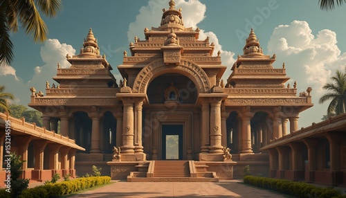 © Nurhansyah, Fototapeta premium Temple Architecture with Sandstone Walls and Sky