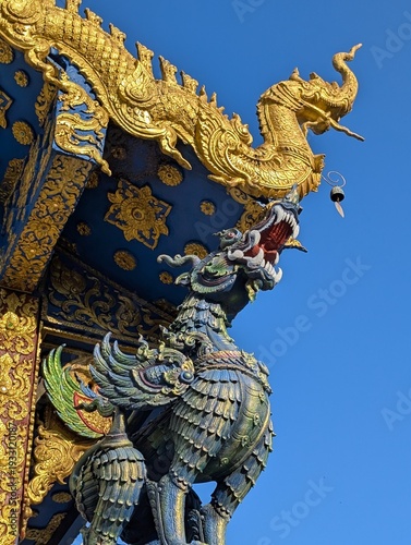 © Nell, Fototapeta premium Temple bleu, statue de dragon