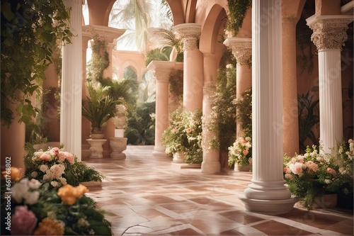 © Reha, Naklejka premium Temple columns wedding digital backdrop photography background wedding ancient palace maternity props floral wedding overlays garden props
