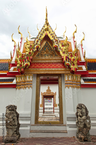 Fototapeta premium Temple door, carving golden wooden temple door