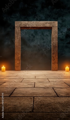 © Natalia, Naklejka premium Temple entrance glowing with hundreds of lamps, peaceful and sacred celebration