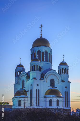 © fedorovekb, Fototapeta premium Temple in Yekaterinburg in the winter night