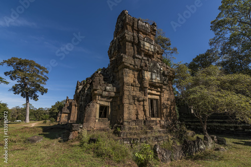 Naklejka premium Temple near Angkor Wat with nice blue sky