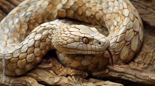 © AI Stock House, Obraz premium Temple pit snake on a wooden item very detailed and realistic shape