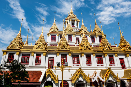 © Napob, Fototapeta premium Temple roof in Bangkok Thailand. Blue sky blackgroud.