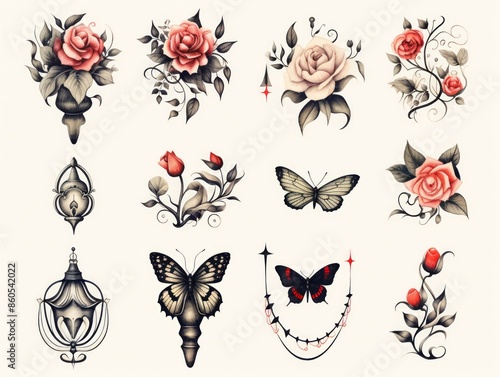 Fototapeta premium Temporary tattoos , illustration, isolated on white background