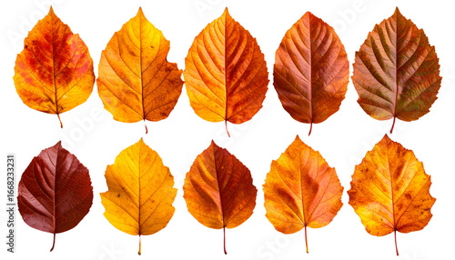 Obraz premium Ten colorful autumn leaves showing changing seasons on transparent background