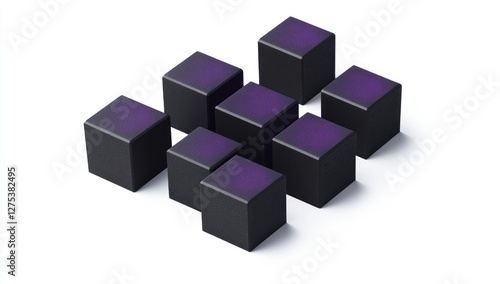 © ddwi, Fototapeta premium Ten dark-purple cubes arranged in a staggered grid pattern on a white background.