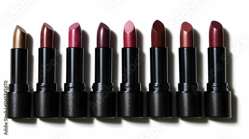 © creative, Obraz premium Ten lipstick shades arranged on white background; beauty product photography for online store or magazine