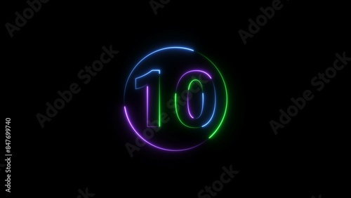 © MD SHAHIN, Obraz premium ten number display neon style colorful number illustration. Black background colorful circle 4k illustration.