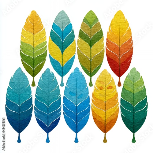 © Chalit, Fototapeta premium Ten Stylized Autumn Leaves in Gradient Colors on White Background