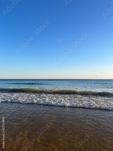 Obraz premium Tender blue sea horizon, blue sea and blue sky, evening light