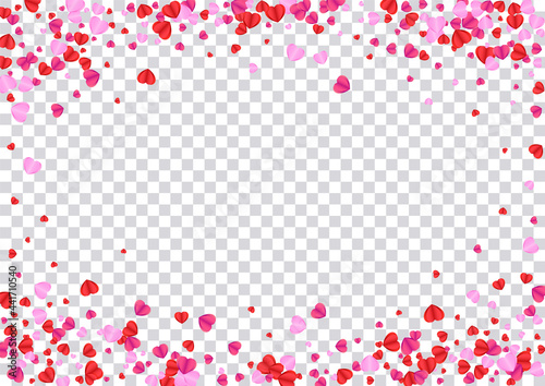 © Vlada Balabushka, Obraz premium Tender Confetti Background Transparent Vector. Random Frame Heart. Red Cut Texture. Fond Confetti Elegant Backdrop. Pink Decor Illustration.