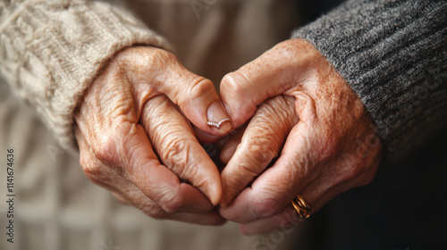 © Kim, Fototapeta premium Tender elderly couple hands forming heart symbol of enduring love and companionship