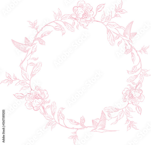 © knopazyzy, Fototapeta premium Tender Floral pink seamless pattern, Elegant Line Art design