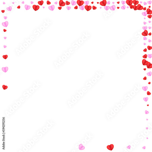 © Vlada Balabushka, Obraz premium Tender Heart Background White Vector. Congratulation Backdrop Confetti. Red Party Texture. Pink Confetti Art Frame. Violet Folded Illustration.