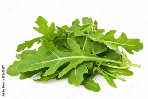 Obraz premium Tender leaves of rocket lettuce against a white backdrop
