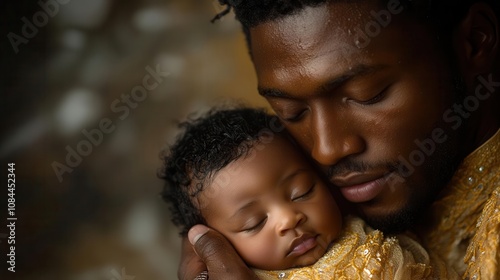 © julija, Obraz premium tender moment captured between an african father and his newborn baby at home, with soft lighting accentuating their intimate bond. the scene radiates love, warmth, and the beauty of new parenthood