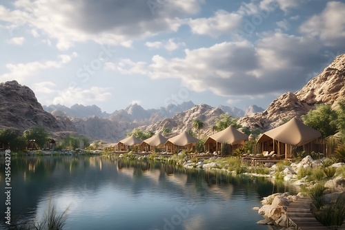 © Md Mojammel, Naklejka premium Tent in the middle of the desert with mountains in the background