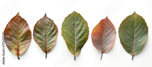 © TheWaterMeloonProjec, Fototapeta premium Terminalia catappa leaves on a blank backdrop (clipping included).