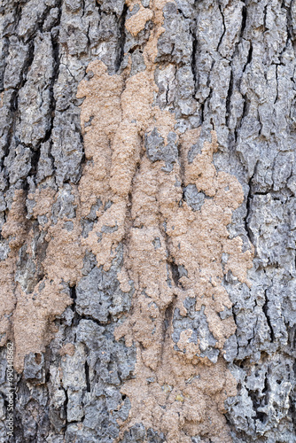 Obraz premium Termites on tree bark, mud from termites on tree trunks.