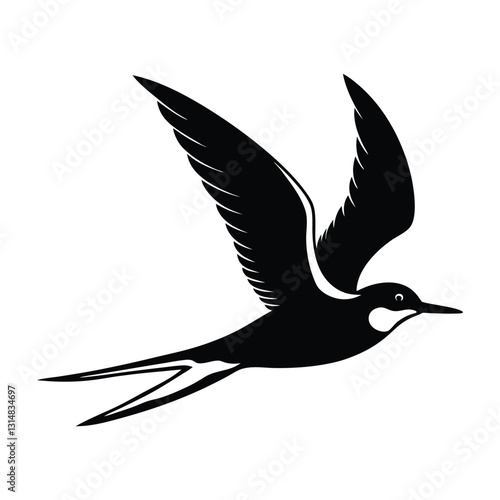 © creativemimi09, Fototapeta premium Tern Flying Low Over Water with Long Wings Silhouette