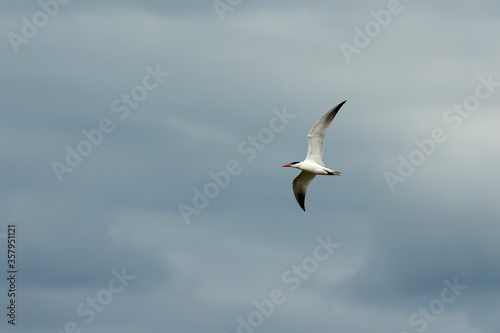 © Denny, Fototapeta premium Tern in flight after the hunt on lake Michigan.