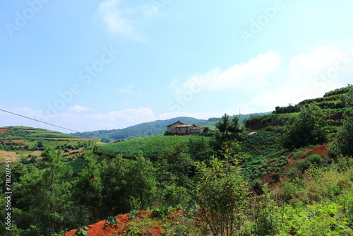 © Hashbu Production, Fototapeta premium Terrace farming with green and orange field
