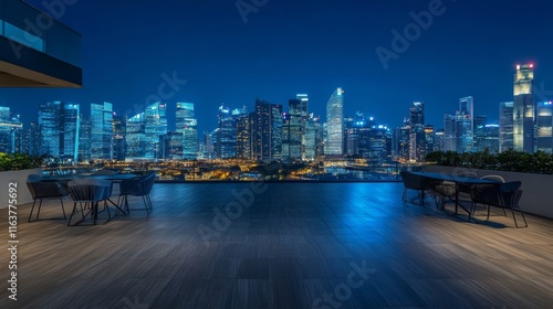 Obraz premium Terrace on rooftop with city view at night. Empty patio on roof or balcony...