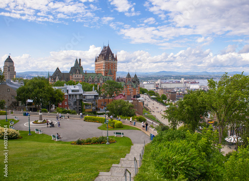 © Bailey Parsons, Fototapeta premium Terrace overlooking the city with a castle