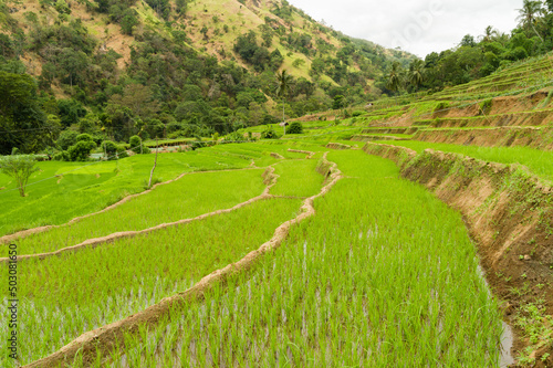 Fototapeta premium Terraced paddyfields in a rural tropical landscape