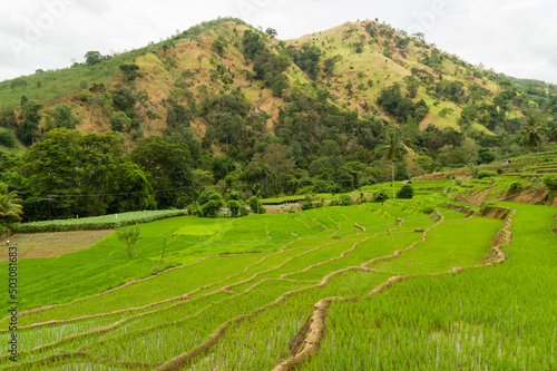 Fototapeta premium Terraced paddyfields in a rural tropical landscape