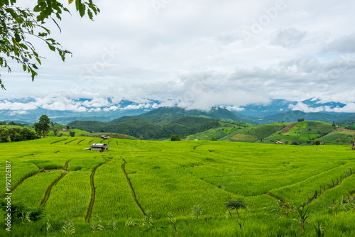 Obraz premium Terraced rice fields at Pa pong Pieng in Chiang Mai, Thailand
