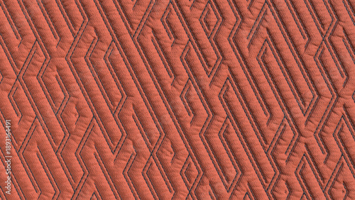 Fototapeta premium Terracotta Orange Fabric with Quilted Geometric Pattern, Textured Textile...