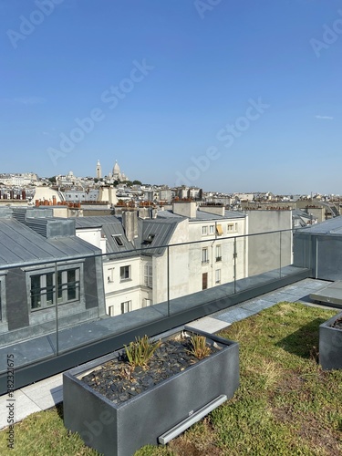 Fototapeta premium Terrasse sur le toit d'un immeuble avec vue sur Montmartre à Paris