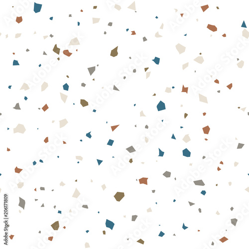 © dinadankersdesign, Fototapeta premium Terrazzo flooring texture vector seamless pattern. Abstract shapes background with marble or granite texture.