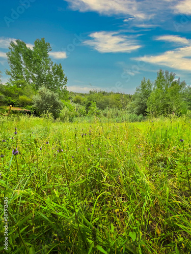 © Carlos, Naklejka premium Terreno verde sob céu azul