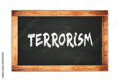 Fototapeta premium TERRORISM text written on wooden frame school blackboard.