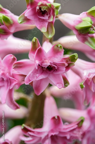 Obraz premium Terry hyacinth flowers in spring in the garden.