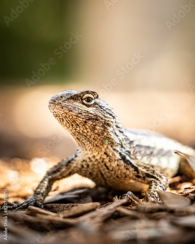 Obraz premium Texas spiny lizard (Sceloporus olivaceus) in a forest environment