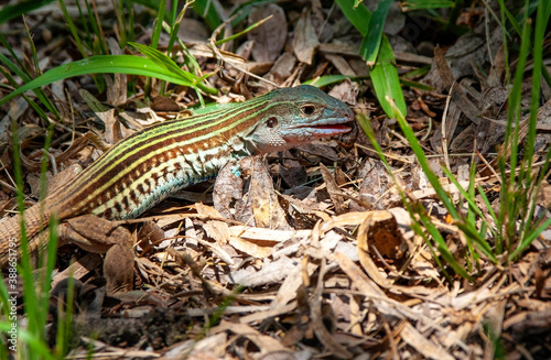 Naklejka premium Texas Spotted Whiptail Eating A Grub