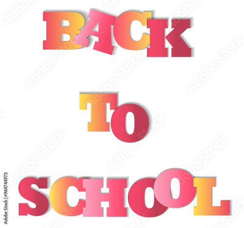 © Lena_Fotostocker, Naklejka premium Text Back to School in colorful gradient letters on a white background. Concept of education and the start of the school year. Vector illustration