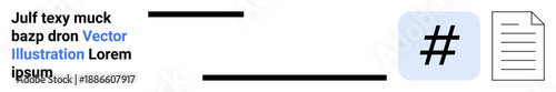 Fototapeta premium Text block with blue link, metadata tag icon, and document silhouette promoting digital interaction. Ideal for messaging, social media, online content, communication tips, blogging, hashtags concept