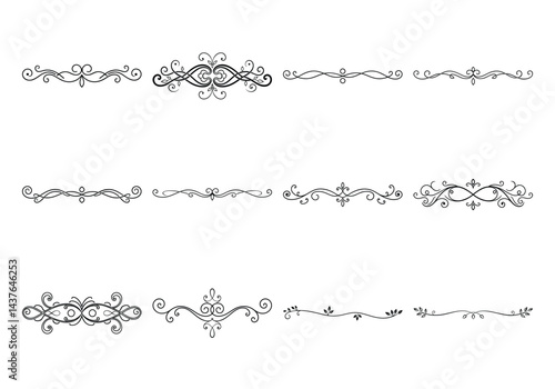© MdMohiuddin, Obraz premium Text delimiters and scroll elements, Graphic underline elements, Vintage divider, vector illustration border