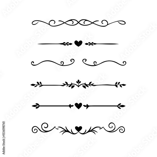 © DesignMosaic, Obraz premium Text dividers with hearts doodle set. Wedding decorative elements. Divider ornament, borders, lines. Hand drawn vector illustration isolated on white background