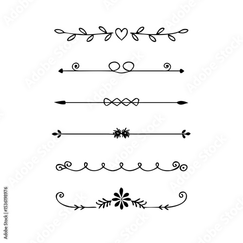 © DesignMosaic, Obraz premium Text dividers with hearts doodle set. Wedding decorative elements. Divider ornament, borders, lines. Hand drawn vector illustration isolated on white background
