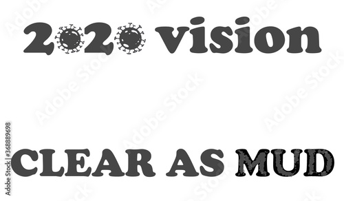 Fototapeta premium Text graphic reading "2020 vision, CLEAR AS MUD", concept for unclear future,...