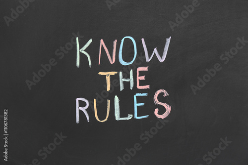 © Pixel-Shot, Obraz premium Text KNOW THE RULES on blackboard